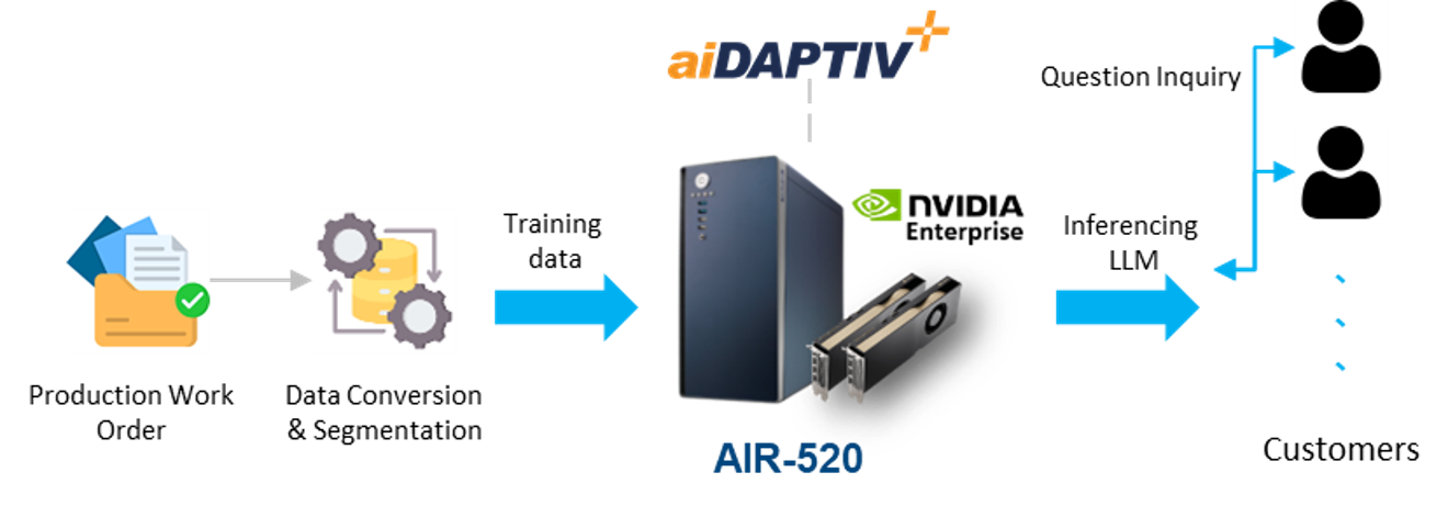 Для преодоления этих трудностей заказчик выбрал решение для тонкой настройки AIR-520 70B LLM, которое включает в себя следующие компоненты: